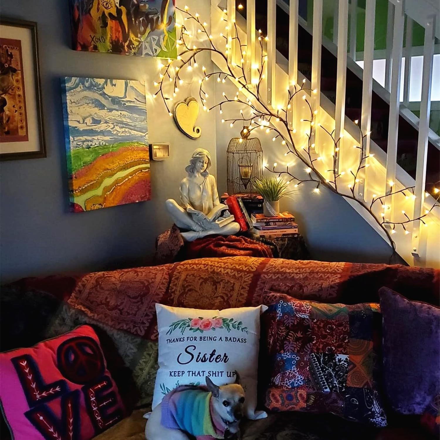 - 🌟Branch light for DIY: These lights are not just a source of light but also a decorative piece, blending seamlessly with your existing artificial plants or natural greenery.The flexible nature of the willow vine allows for endless creative possibilities, making it a great DIY project for home decorators.
