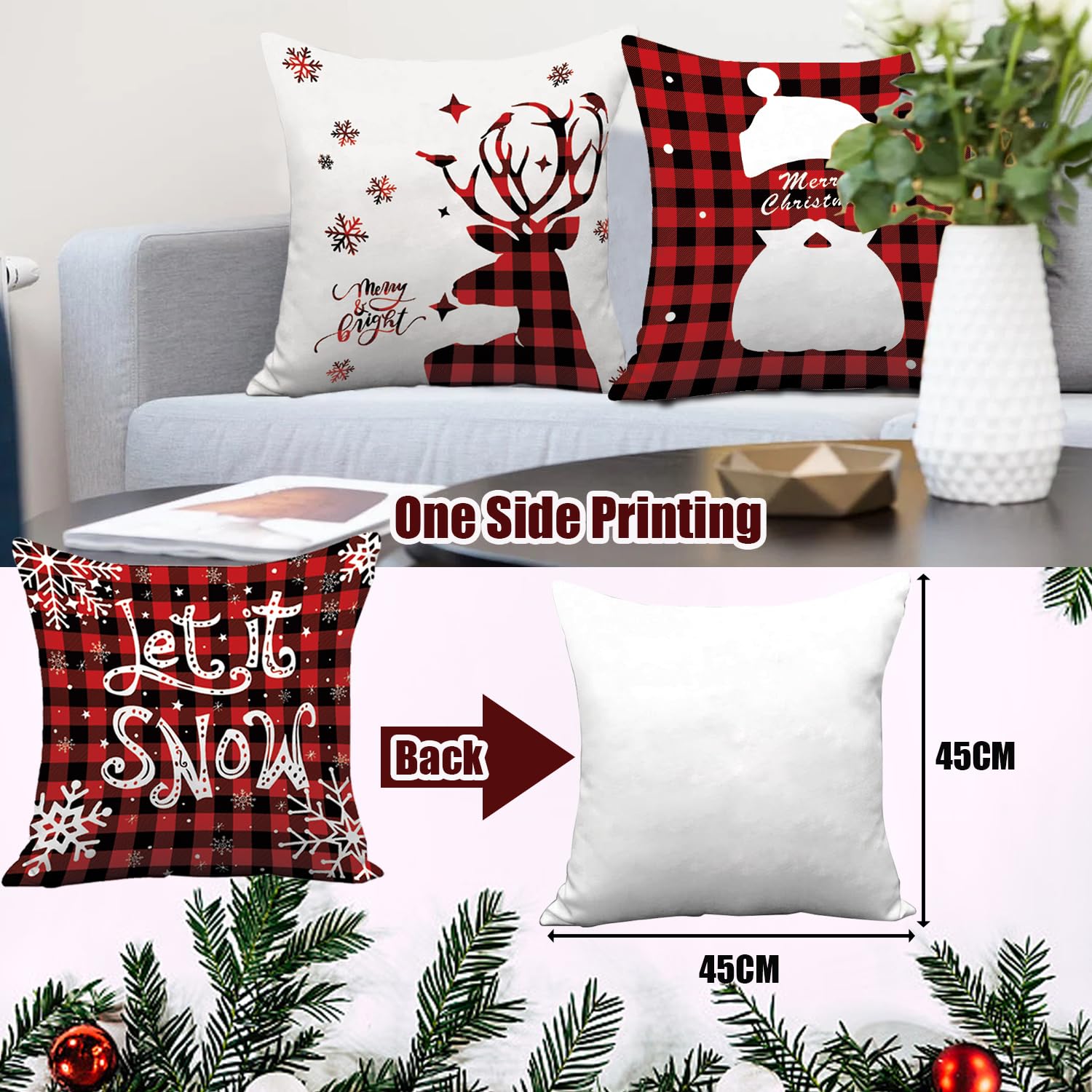 - 【Christmas Decor Occasion】-- Christmas tartan cushion covers are perfect for Christmas decorations indoor in Bedroom, Living Room, Office, Couch, Chair, Christmas party decorations; Outdoor Christmas decorations in garden, car, bench etc. These 45x45cm Christmas cushion covers will enrich your home Christmas atmosphere.