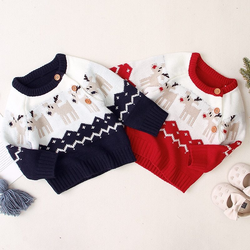 Boys and girls knitted cartoon Christmas elk sweater