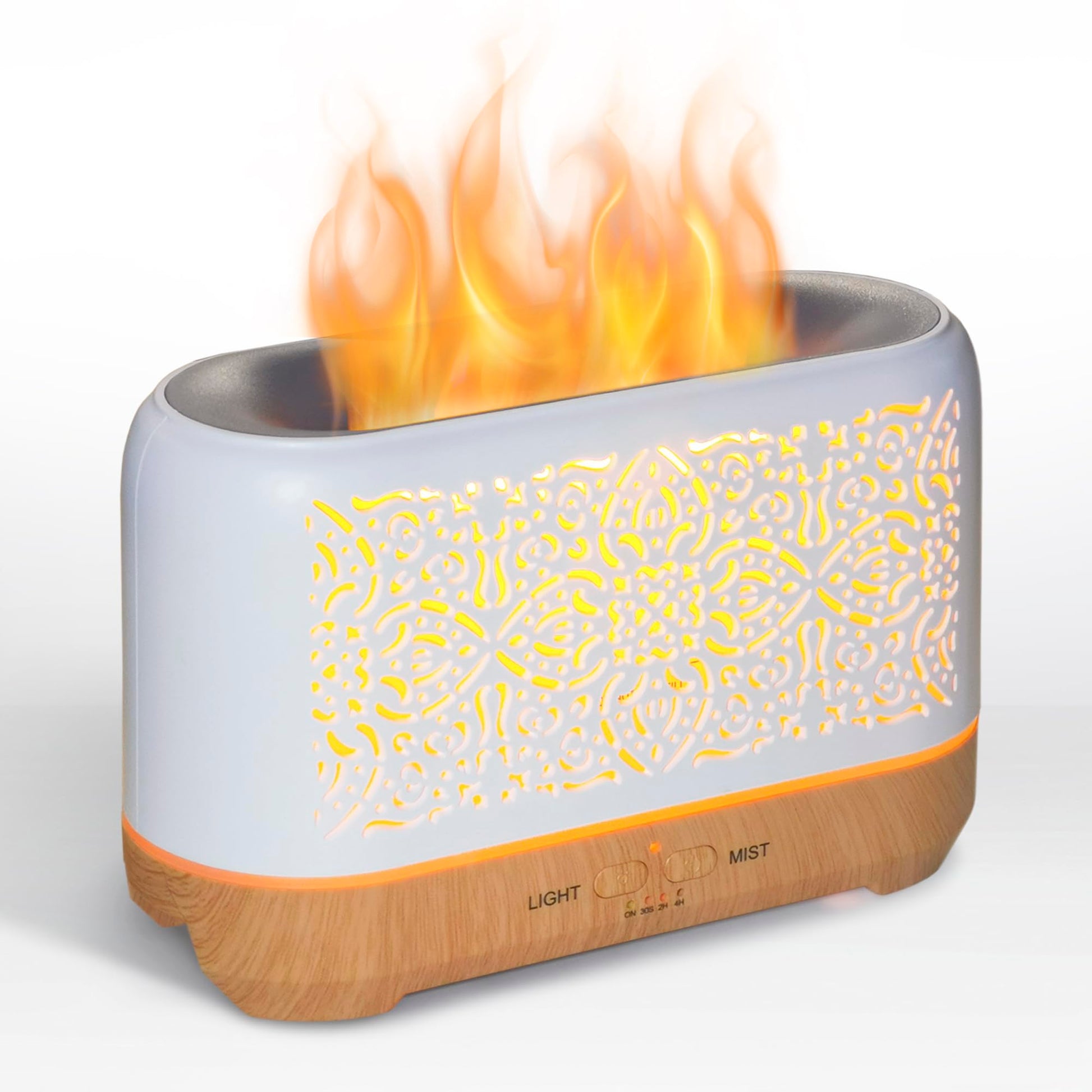 Earnest Living Essential Oil Diffuser Classic Flame Diffuser 200ml Timers Night Lights and Auto Off Function Home Office Humidifier Aromatherapy Diffusers for Essential Oils White