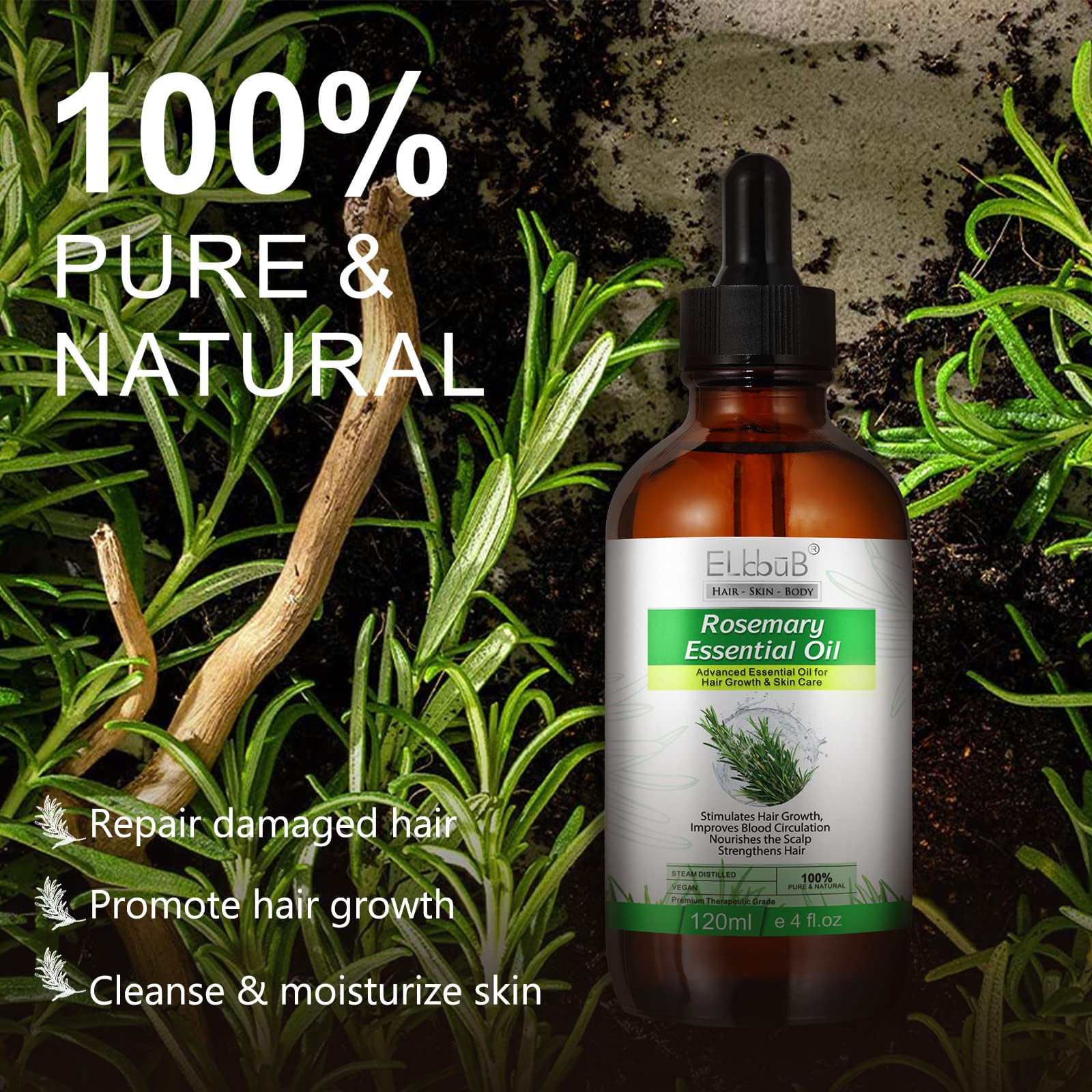 ELBBUB Rosemary Oil for Hair Growth - Undiluted Rosemary Oil for Hair Skin - Cleansing Rosemary Essential Oil for Dry Scalp Care Rid of Itchy and Dry Scalp, 1, 120.0 millilitre