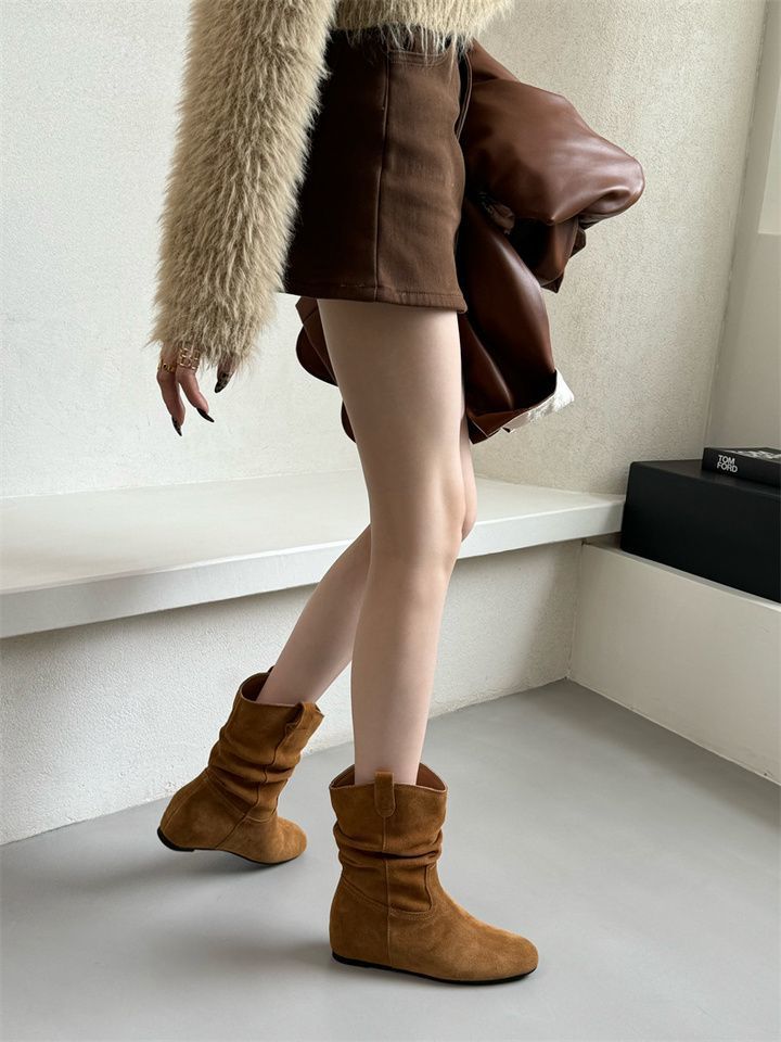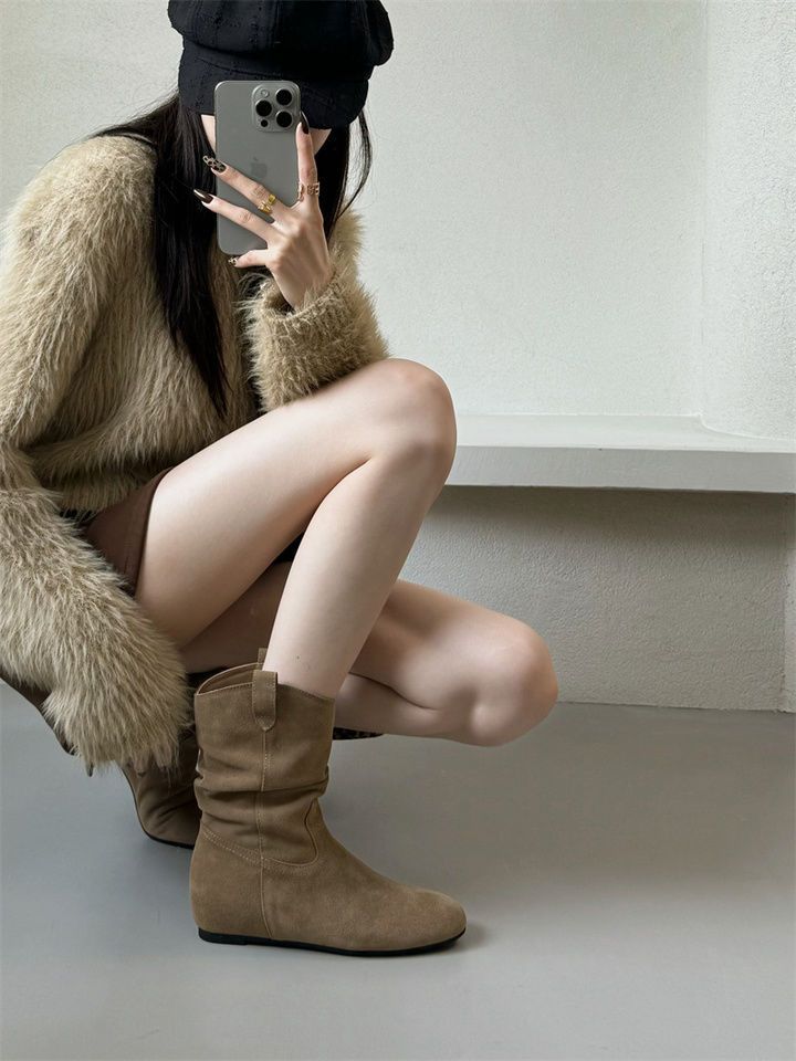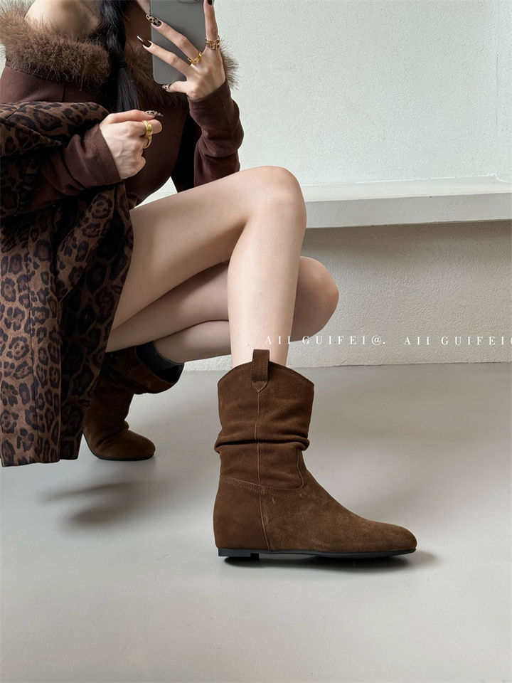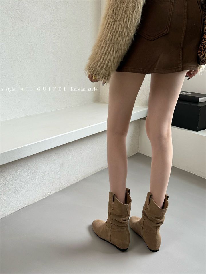 French Retro Autumn And Winter New Frosted High Sleeve Western Cowboy Boot Women