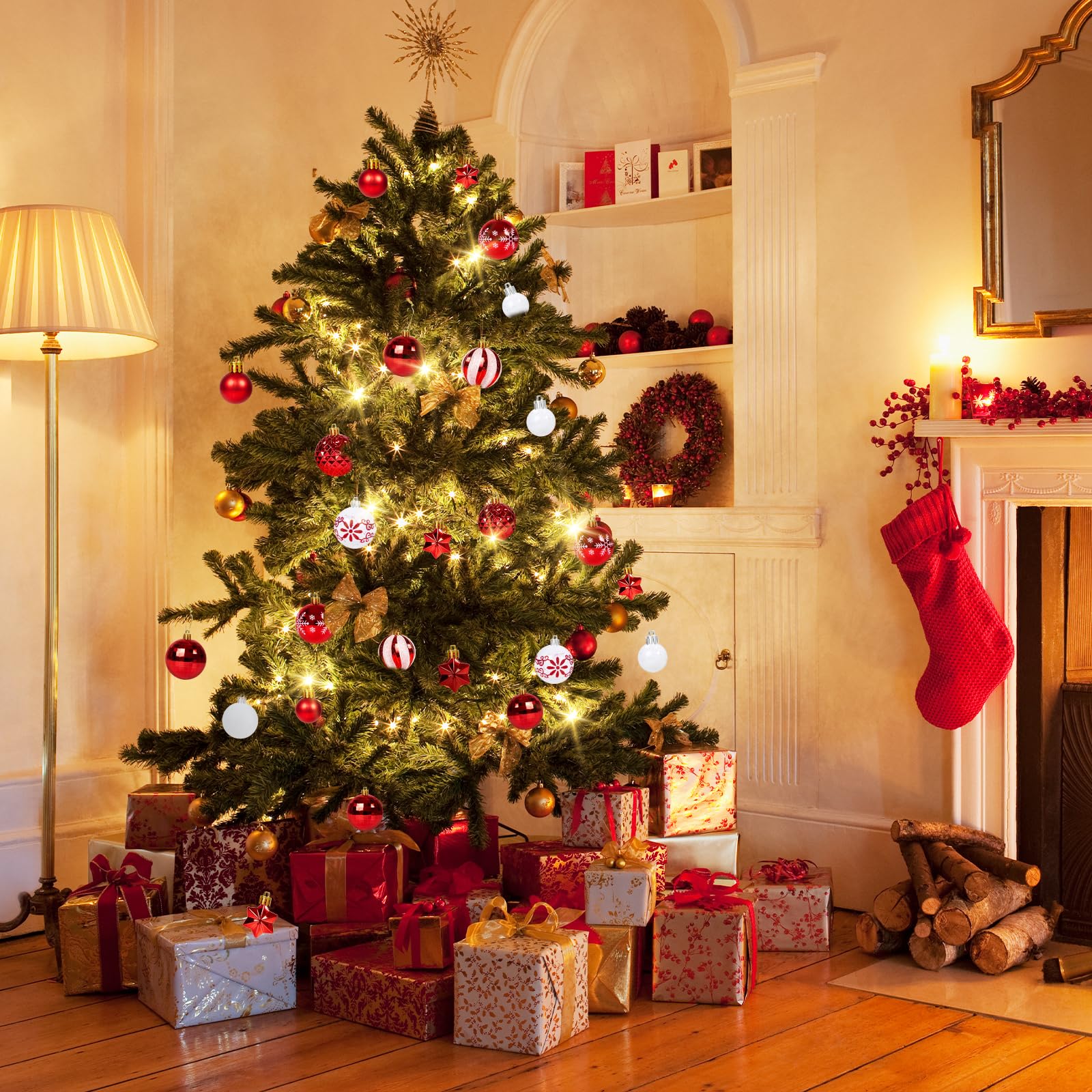 - 【Classic & Unique Design】Featuring classic red and white colors, these xmas tree decorations enhance the festive spirit. The Christmas balls come in various finishes like such as glossy, matte, glitter, checkered, threaded, and snowflake patterns. Adding visual interest to seasonal scenes, the vibrant colours enliven Christmas decorations.