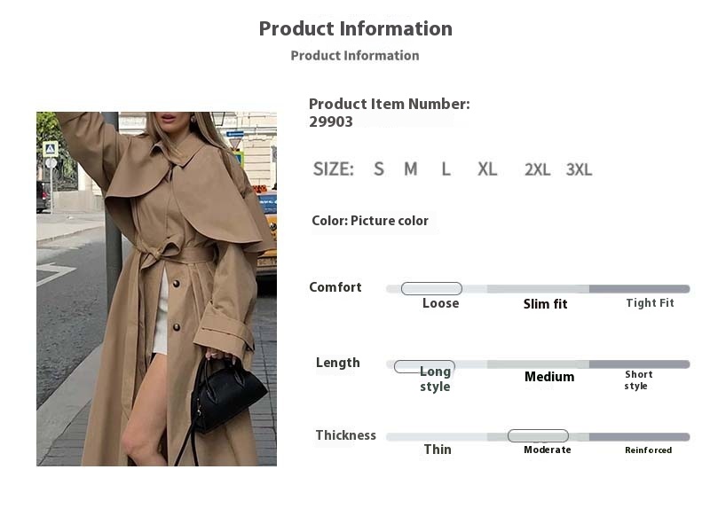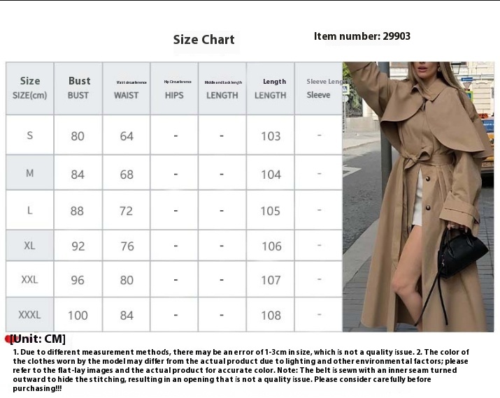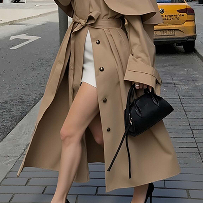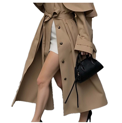 Loose Lapels Long Sleeve Trench Coat Mid-length Coat For Women