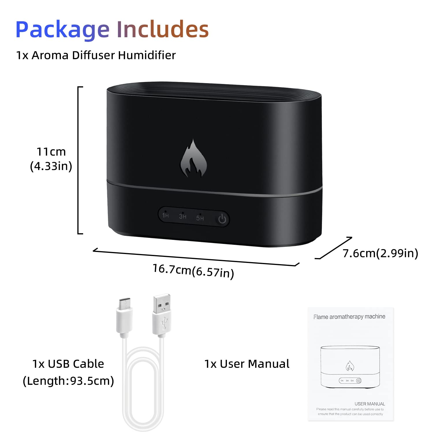 Mcbazel Flame Aroma Diffuser,Fragrance Essential Oil Diffuser Humidifier,Aroma Diffuser Humidifier with 3D Flame Night Light 200mL for Bedroom, Home and Office - Black