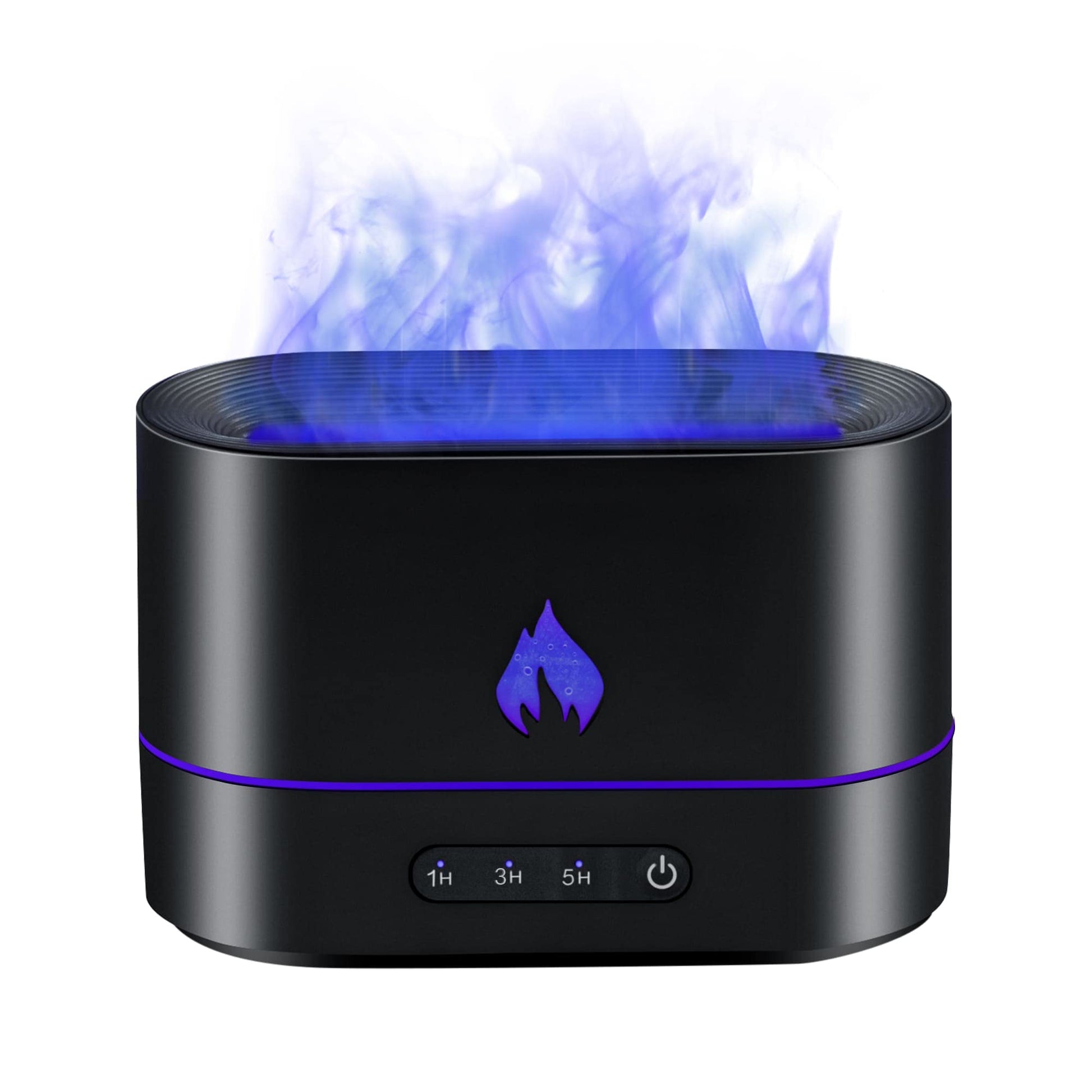 - This 200mL large capacity essential oil diffuser is perfect for ultrasonic aromatherapy. Light and fine mist create a realistic 3D flame effect that can be adjusted between a warm yellow flame and cold blue flame. Add 3-5 drops of your favorite essential oils to relieve fatigue, moisturize your skin and ensure a pleasing atmosphere for you to relax.