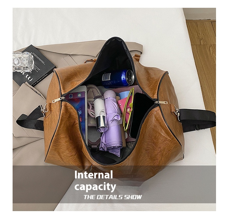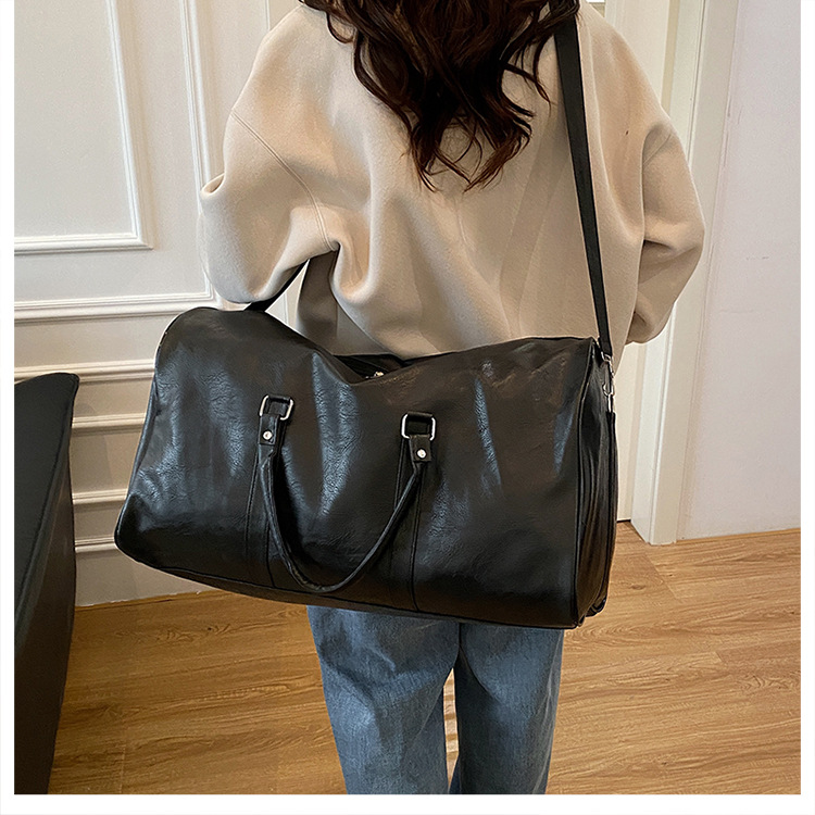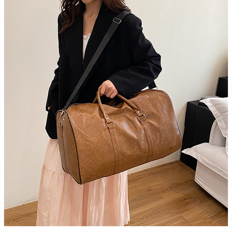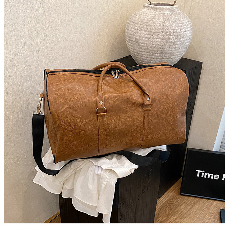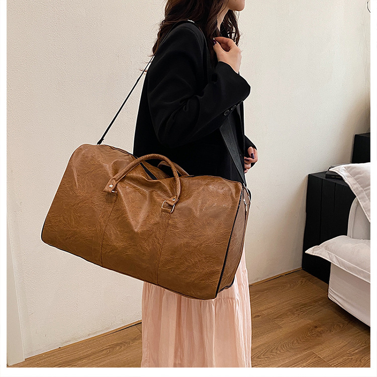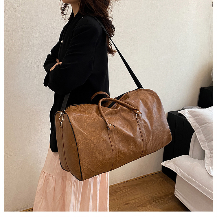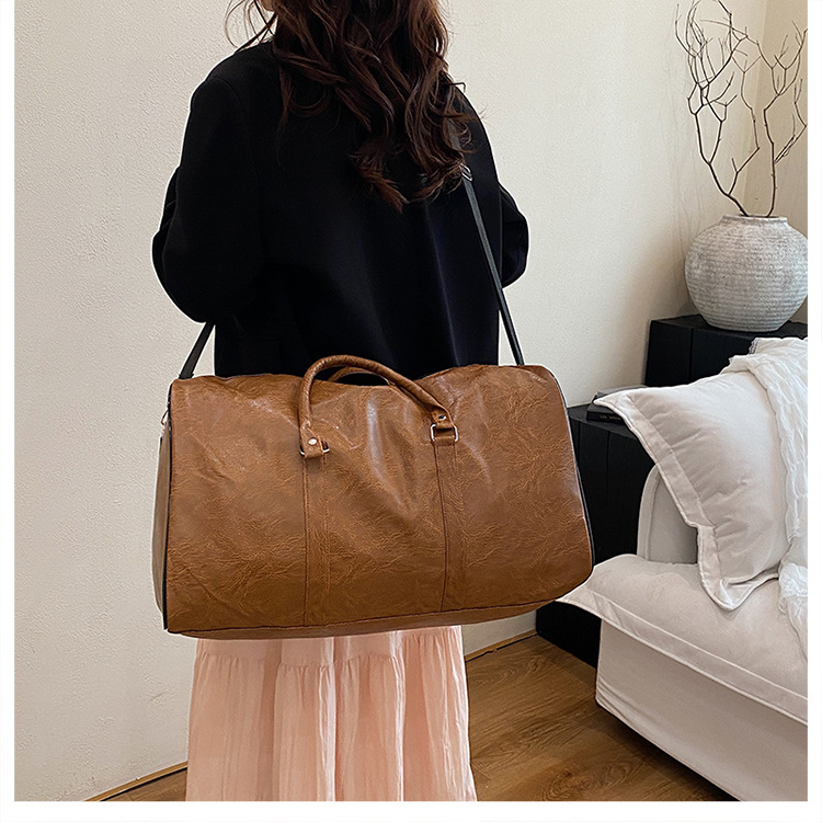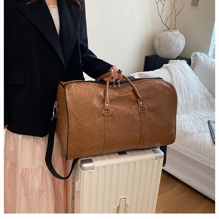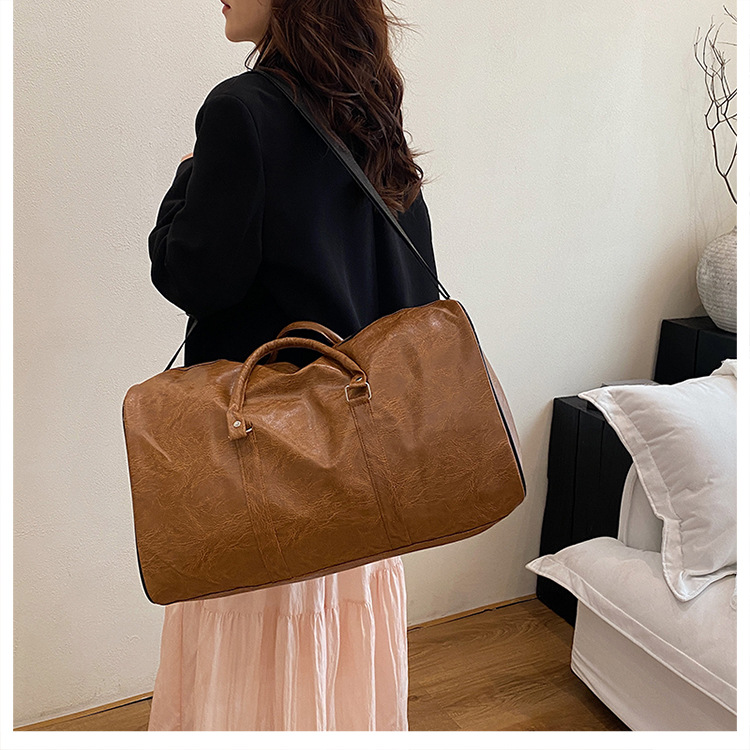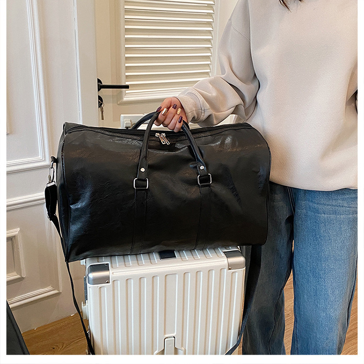 New Simple PU Texture Travel Bag Fashion Solid Color Luggage Travel Shoulder Handbag