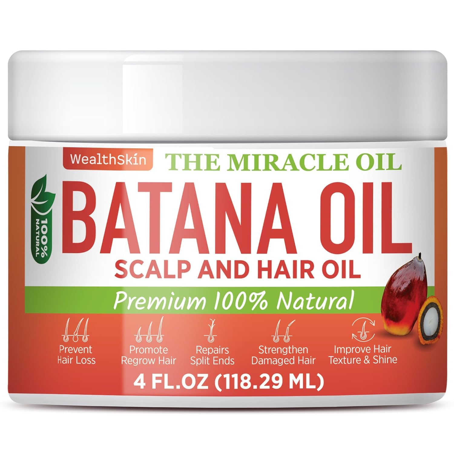 Wealthskin 100% Pure Batana Oil – Cold Pressed in Honduras | Natural Scalp & Hair Oil for Shine, Softness & Thicker-Looking Hair | Raw & Unrefined – 4 fl oz (118 ml)